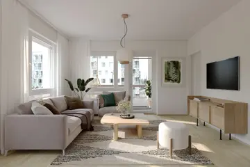 Tässä kulmahuoneistossa yhdistyvät valoisuus, toiminnallisuus ja viehättävä asuinympäristö. Tilavasta olohuoneesta on käynti koko huoneiston levyiselle lasitetulle parvekkeelle, joka tuo runsaasti lisätilaa ympäri vuoden.