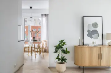 Keittiökalusteiden ovet ja etusarjat ovat Novartin vakiomallistoa ja kodinkoneet Electroluxin valikoimasta. Materiaalit Sisustusvalinnat-esitteen tyylien mukaisesti. Lattioiden, seinien ja kattojen pinnat olohuoneen mukaisesti.