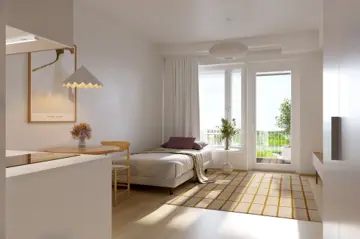 Tämä valoisa yksiö tarjoaa kompaktia asumista ilman kompromisseja. Huoneiston levyinen itään avautuva parveke tuo asuntoon runsaasti luonnonvaloa ja tarjoaa rauhalliset näkymät vehreään puistoon - täydellinen paikka nauttia aamukahvista.