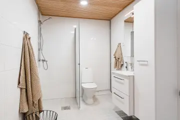 Kotiin on valittu Kesä-tyyli, joka kestää aikaa ja trendien vaihteluita. Tyylin perustan muodostaa valkomattalakatun tammiparketin luonnollisuus, jonka maanläheistä sävymaailmaa tukevat keittiön lämpimän puunsävyiset ovet. Kylpyhuoneessa ja erillis-wc:ssä seinien vaaleita pintoja rytmittää lattioiden harmaa laatoitus. Tarkat tiedot asunnon materiaaleista saat asuntomyynniltä. Asunnon materiaalit voivat poiketa yllä olevasta kuvauksesta.