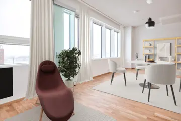 Asunnossa on viherhuone, joka on suunniteltu monikäyttöiseksi tilaksi. Voit yhdistää sen olohuoneeseesi avattavilla lasiseinillä tai sisustaa sen mieluisaksi tilaksi itsellesi. Viherhuoneen tuoma lisäelementti lisää asunnon tunnelmaa. Huoneistossa B66 pääset nauttimaan 3.8 metrin huonekorkeudesta!