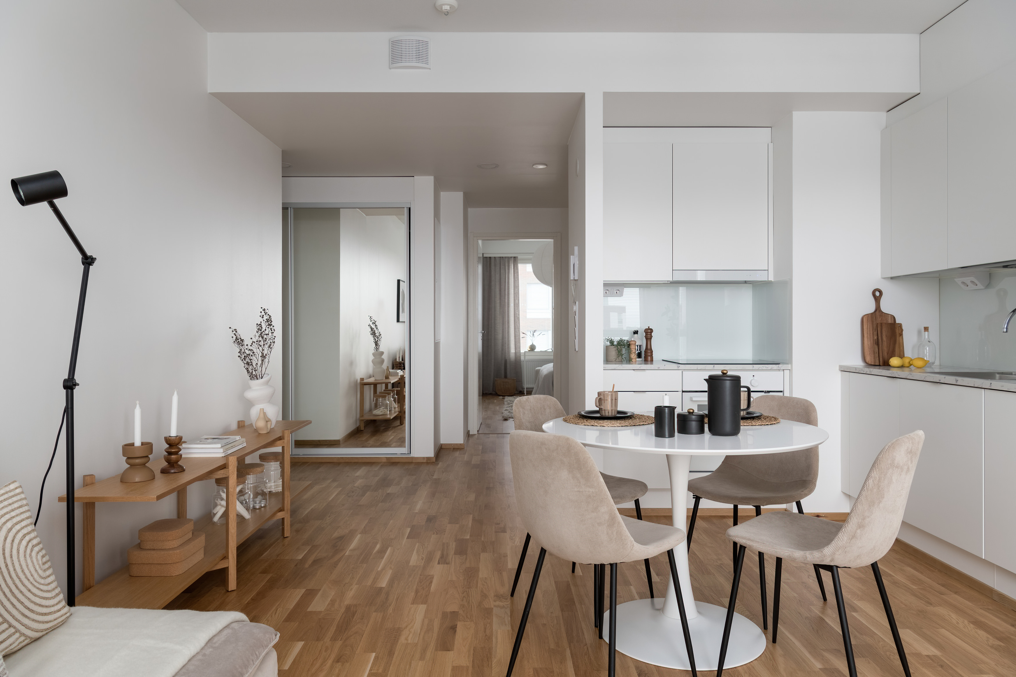 Uusi keskustakortteli tuo alueelle seitsemän uuden asuinkerrostalon kokonaisuuden, josta ensimmäiset kohteet ovat jo valmistuneet. Tarjolla on monipuolisia asuntoja yksiöistä tilaviin perheasuntoihin – usein saunalla varustettuna.