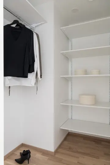 Tämä ylimmän kerroksen kompakti kaksio sijaitsee talon länsipuolella ja on sisustettu vaaleilla pinnoilla sekä marmorikuvioisella työtasolla, mikä luo avaran ja valoisan tunnelman huoneistoon. Makuuhuoneessa on käytännöllinen vaatehuone, ja sinne tulvii myös valoa olohuoneesta. Rauhallinen parveke tarjoaa ihanteellisen paikan nauttia kesäiltojen auringosta.