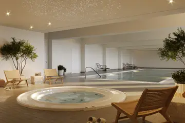 Korttelin yhteinen uima-allasosasto ja 14. kerroksen talosauna kutsuvat rentoutumaan. Arkea sujuvoittavat lisäksi kuntoiluhuone, varattavat etätyö- ja juhlatilat, tavaralainaamo ja pyöränpesupiste, jossa puhdistuvat myös lasten kuravaatteet ja koiran tassut. Kokonaisuuden kruunaa viihtyisä piha leikkipaikkoineen.