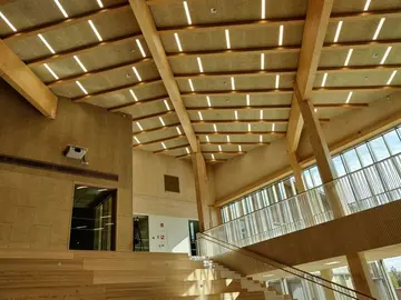 Rakennukseen asennettiin yhteensä noin 2 000 kuutiota puuta. Tämä määrä sitoo itseensä noin 1 300 tonnia hiilidioksidia rakennuksen pitkäksi suunnitellun käyttöiän aikana. Määrä vastaa hiilidioksidipäästöjä, jotka syntyisivät ajettaessa keskiverrolla suomalaisella polttomoottoriautolla 183 kertaa maapallon ympäri.