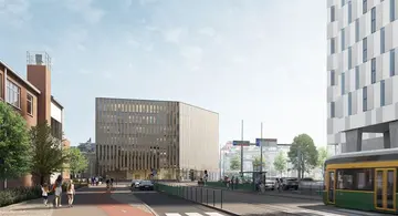 Puukorttelin täydentävä toimistorakennus sisältää seitsemän kerrosta ja kellarikerroksen ja sen kokonaisala on noin 8700 neliömetriä. Korttelin on suunnitellut Anttinen Oiva Arkkitehdit.