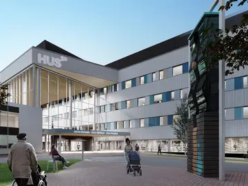 Tiedotteen liitteenä oleva kuva: Lukkaroinen Arkkitehdit Oy, Arkkitehtitoimisto Tähti-Set Oy, UKI Arkkitehdit Oy, HUS, SRV