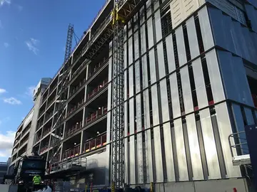 Työmaalla näkyivät syksyllä huomiota herättävästi isot muottirakenteet. Isot muotit ovat nyt pääosin poistuneet, kun uuteen pysäköintihalliin johtavan ajorampin seinävalut ovat lähes valmiit.