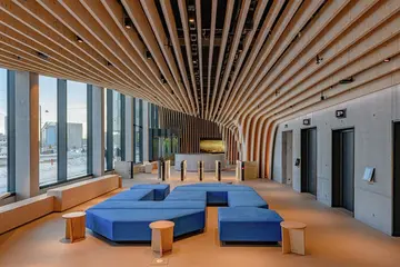 Rakennuksen Accoya-julkisivu on innovatiivinen ja järkevä valinta merellisen vaativiin olosuhteisiin, ja ajan myötä se myös harmaantuu tasaisen kauniiksi. Rakennuksen aulatila on näyttävästi CLT-lamellirakenteilla verhoiltu aaltoileva kokonaisuus. Puun käyttö sisustuksessa on korkeatasoista, luontevaa ja rikasta. Työympäristönä rakennus on viihtyisä, kodikas ja akustisesti miellyttävä.
