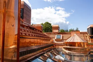 Yksi silmin nähden merkittävä muutos perusparannuksessa oli rakennuksen sisäpihan kattaminen. Pilareiden varaan rakennetun kuparikatoksen keskialue on umpikattoa ja sivuilla kiertävä lasinen valokate päästää valoa sisään. Kuparinen umpikatto ja hoikat pilarit luovat valon ja akustiikan keinoin voimakasta tunnelmaa sisäpihalle. Kuparia on rakennuksen perusparannuksessa käytetty yhteensä 15 500 kg.